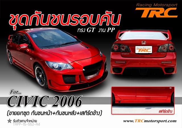 ชุดกันชนรอบคัน ทรง GT พลาสติก PP นำเข้า สำหรับ CIVIC 2006 (FD)