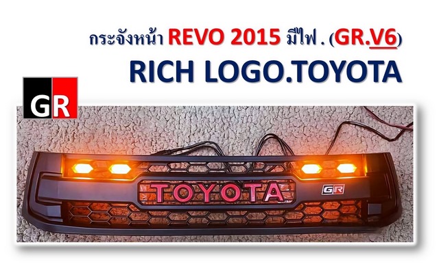 หน้ากระจัง REVO 2015 ลาย GR สีดำด้าน โลโก้ TOYOTA มีไฟ 3 จุด