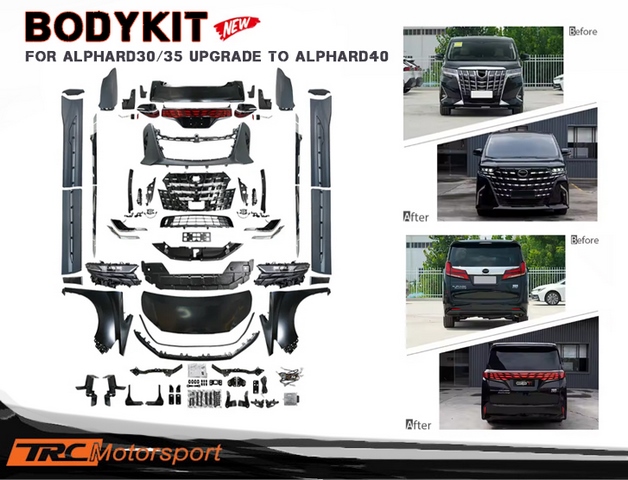ชุดแปลงกันชนรอบคัน ALPHARD30 2015-2023 Conversion ALPHARD40 2024 อุปกรณ์ครบชุดกันชนหน้า,กันชนหลัง,เสกิร์ตข้าง,หน้ากระจัง,ไฟหน้า,ชุดไฟท้าย,สปอทไลต์,ฝาหน้า,ชุดโครเมี่ยม,etc.